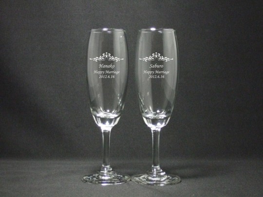 シンプルなシャンパングラスです。豊富なデザインからあなただけのオリジナルグラスを創りませんか?贈られた方もきっと喜ばれます。